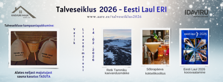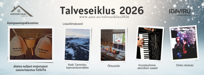 Ida-Virumaa talveseikluskampaania 2026 pakkumine Kaevuri majas 9. veebruarist kuni 15. märtsini: